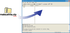 | 5)現れたサーバー中に圧縮したファイルをドラッグしサーバーへ転送します。 | |